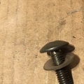 M6 x 20 caphead with a large (15mm) diameter cap and a nylon washer, screws into a wellnut fitted into the headlight housing; [IMG] [IMG]