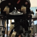 Forks & brakes are standard kit, the monoposto seat, cans and Ohlins shock are upgrades and I would say that the white number board on the front...