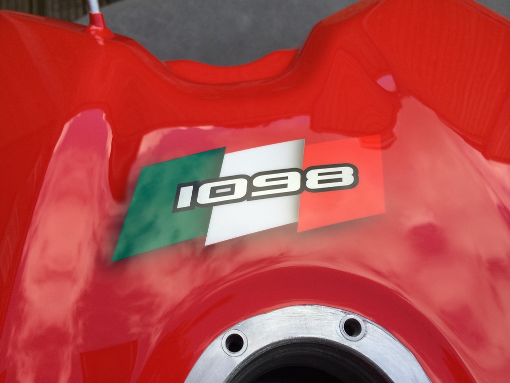 Mine is all red currently with the ally showing through on a standard size Ducati logo - it's subtle, I didn't notice it at first But it will be better soon (even Bradders will agree I'm sure - but not in public)
