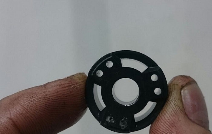 Got my forks serviced here in Dublin yesterday by NDM - NDM - North Dublin Motorcycles - fairly clued in outfit, they do a lot of road race and track bike set up, plus they're fully qualified Ohlins techs. My forks only started weeping this yr, not too bad but from last month or so they were pretty much almost out of oil. My forks had never been touched due to previous two owners pussying about on it and v low mls before i bought it. Its only got 7.5k kms on it now. I only have it just over a yr now. One of the inner plastic rings that has holes in it ( i know, what a desc - see pic below ) was fuked. It had a build up of bakelite in one fork. In the other fork, one of the inner cartridges was sticking. I thought i was in for big expense, but escaped it. Steering never felt bad bad, even on track, but it always felt like steering was a little heaver than it should be. I couldnt put my finger on it. So after a clean, new oil, seals etc,the difference is unreal for the better ! SO my advice, get them serviced, its a bit of a small expense but the rewards more than justify ( all i gotta do is get slightly lighter springs over the stiff stock ones. )