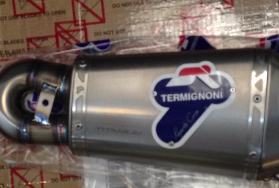 9. So more parts arrived today - pukka titanium end cans from Termignoni race department - "Reparto Corse" and note the titanium pipe; and the timing and cam gears all super finished.