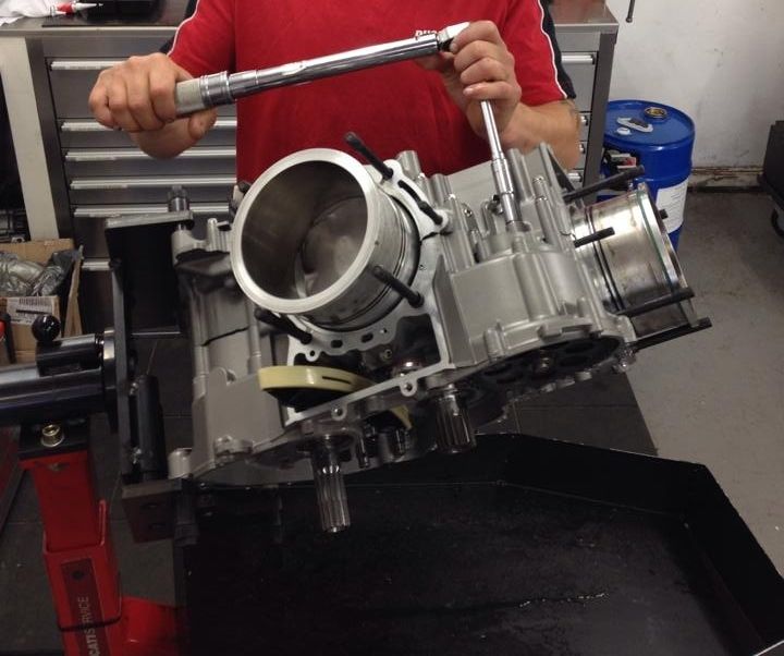 18. So work continues on the project. Bottom of end of engine being done - cases closed and piston liners being closed. Still can't get over size of those cylinders! Front end also being measured up to check everything fits - the fitting of RS parts to the stock wheels speed sensor and sensor discs not simple.