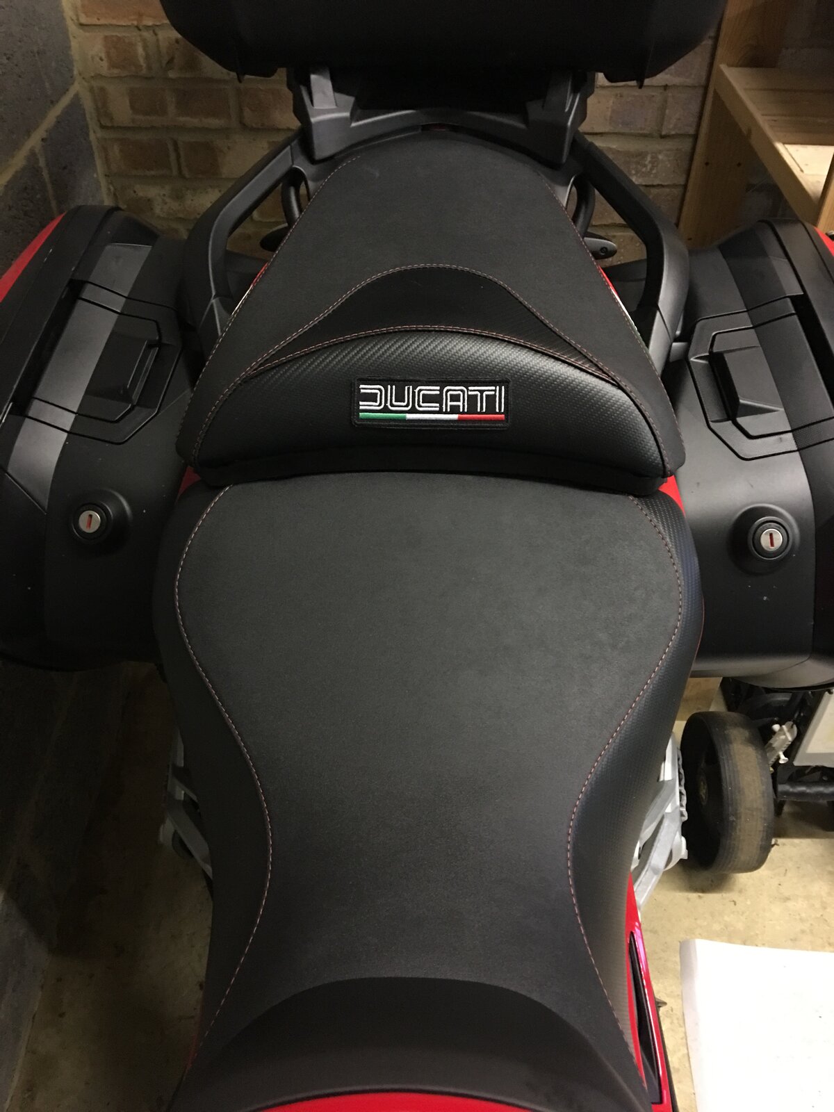 "He who seeks will find" says the scripture. I've been looking all over and finally came across two "new" Touratech seats for my Pikes Peak 1200 DVT. Both driver and passenger. They were advertised in Italy, and have been fitted to a Multistrada for 3 months. Talk about luck. With shipping and insurance, they cost me 485 euros. He had paid 850 euros for the seats when he bought them new. Can't wait to try it