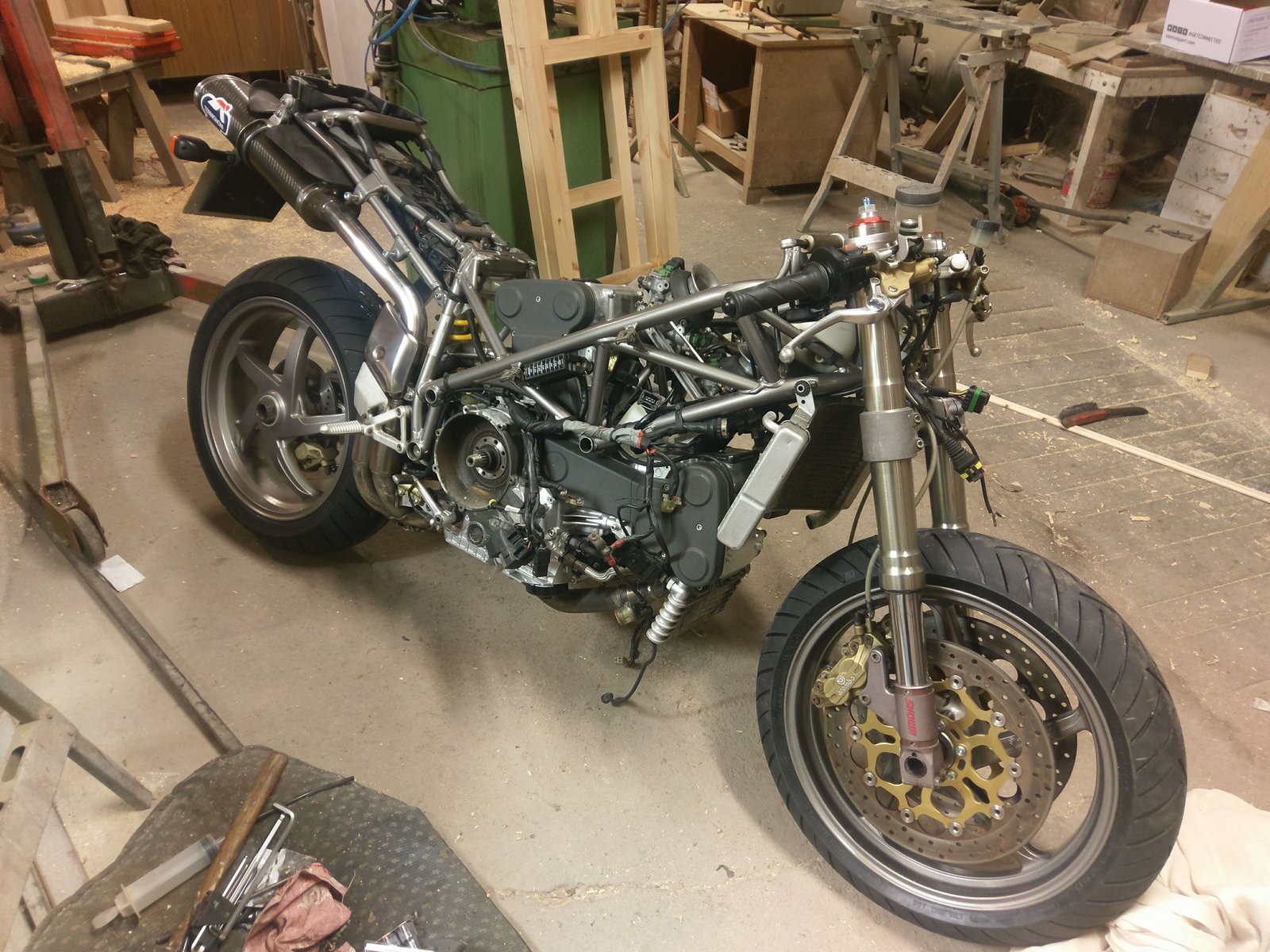 17. looking good! The bike not the workshop... Lol, I'm pleased... Most on here have workshops that look like Dr's surgeries.... Yours is more akin to mine... Albeit yours probably a bit messy due to use not sheer laziness ...