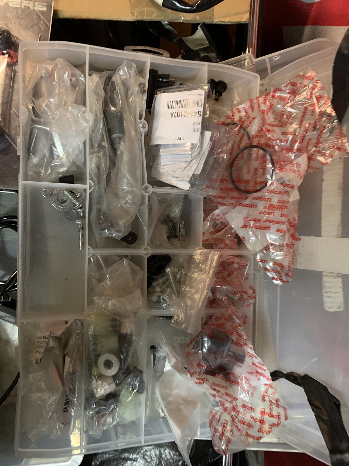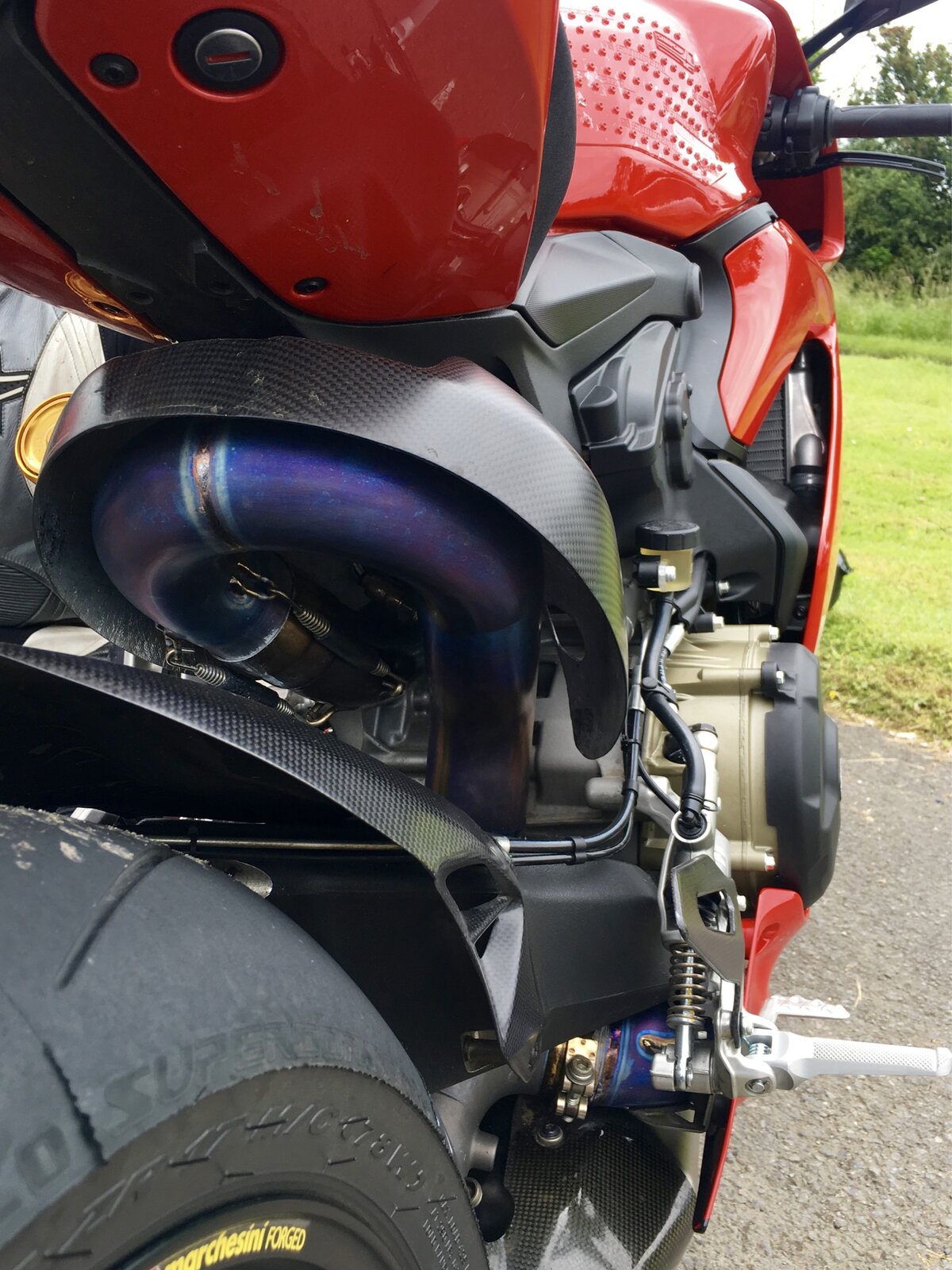 Apologies for being someone that says this but I want to 'gauge interest' and I'm hoping the items rarity warrants it. I have the full road going equipment from my 2016 Panigale R, the bodywork and lights, mirrors, etc have been in boxes since these pictures were taken after its 600 mile service a couple of years back so it is pretty much spotless. - Body work complete used for run in only. - Akropovic titanium exhaust complete. The pipes have recently been replaced by Ducati so nearly new. - Lights, mirrors, etc complete - Either one brand new or one slightly gravel rashed Panigale R Ohlins rear shock. It will go on to any Panigale 1299 model and it will also go onto any 1199 model if you swap to the 1299 nose fairing stay and rear subframe stay. (I presently use 1199 body work on the bike as its easier to get). I'm looking for serious collector type offers of it's actual value rather than bargain hunters please since I'm trying to decide if it's worth selling to recoup some of my engine money instead of it sitting on the shelf in a box doing nothing in case I decide to sell the bike complete.