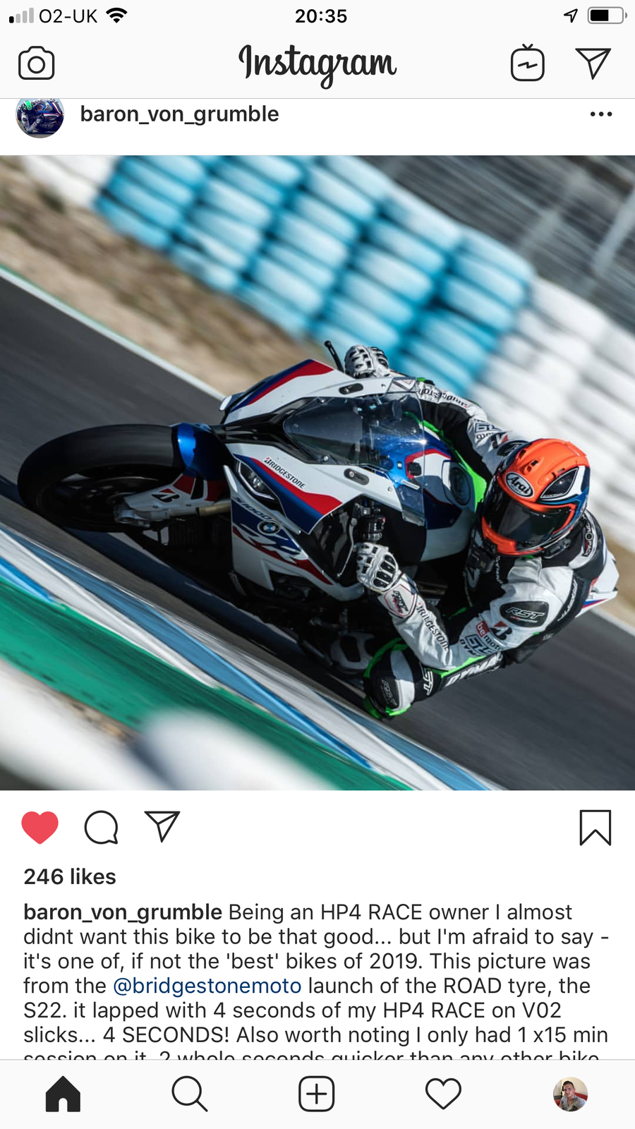 2 seconds a lap faster than the next bike at Jerez (including the v4s) on the Bridgestone launch. Some decent riders there including Neevesy and the 44T guys as well as some decent level racers. Baron was within 4seconds off his Laptime on his HP4 race which was on race slicks. S1000 was on road tyres (and he is FAST around Jerez) - race pace fast. Second fastest bike of the day was the updated 2019 fireblade SP - big surprise! But it is easy to ride. Pretty mega looking at the data in wsbk as well, the bmw is on a virtually standard motor still and is loosing 6tenths down one straight alone! But still 4th fastest! Not bad at all.