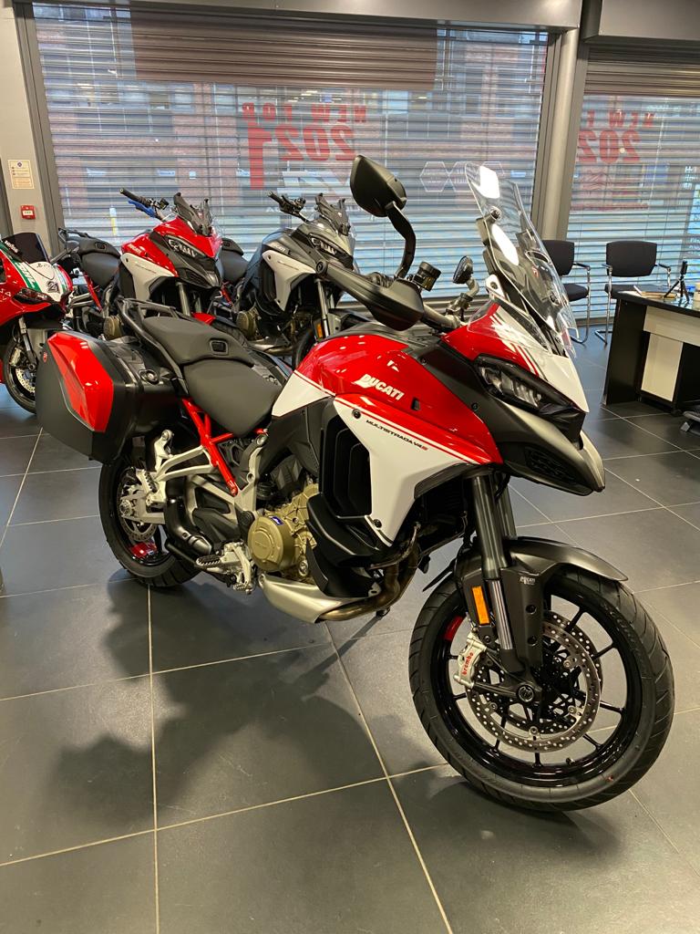 Just bought a V4s and it is amazing. My 1200s with full race termi was too loud for a weeks tour. Ok for a day trip but after a few days the noise was too much! Now I’ve got the V4 I’m also allowed into Switzerland. Ducati Manchester did some great graphics to get rid of the satin aluminium sides.