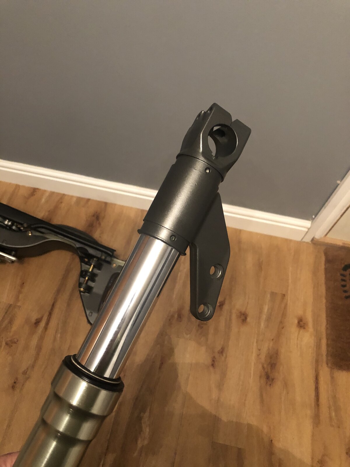 Had a little paint left over from the swingarm, so thought I’d start to smarten up the forks. I’ve got two sets so used this as a test. What you think? I think it looks pretty smart. Much better than the faded bronze imo
