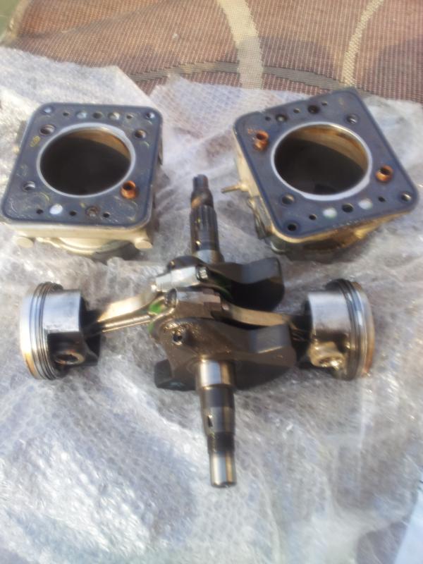 Crank complete with rods and pistons. 3 phase type. 2x cylinders/barrels. Selling because i bought all this plus heads and i only need heads. Bores show little wear, same as pistons etc, big ends fine etc. Will sell as job lot or may split. Open to offers. Will post
