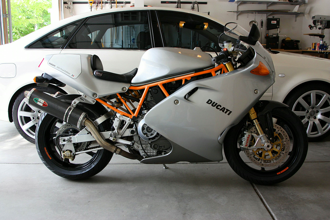 Seems a shame to move away from the classic, Italian, Ducati red. :/ As for frames, I like the original bronze but red looks good too. For me, white is just too stark...