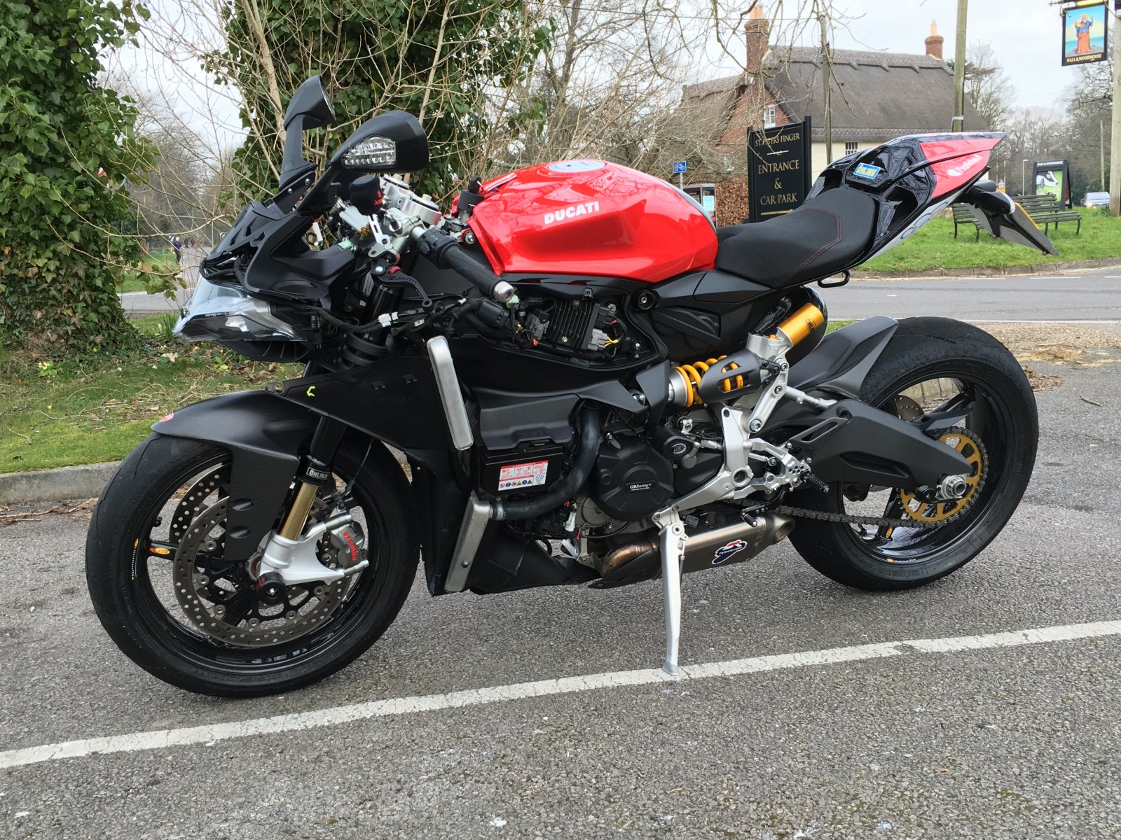 Just taken the bike out... Cold! Brakes feel epic and that's with hardly bedding the pads in!! Real strong 1 finger braking. Deffo worth the aggro but didn't try ABS. I want to bed the pads in a bit before I start yanking the anchors on.....Certainly no error codes so its looking hopeful... Ducabike rearsets give a bit more room, and make for a very short throw gearshift. You just need to add the tiniest amount of pressure and it changes up. Different but good I think.... My initial reservations are laid to rest. Ohlins damper makes the bike feel more nimble - I don't like much steering damper on... Coolant levels all good, and expansion tank settled out nicely...