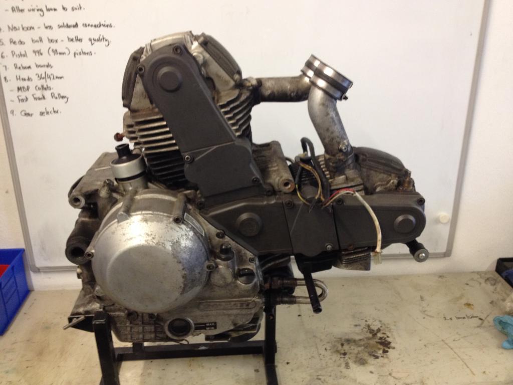 Howdo!! Well drilled out the crankcases to accept the 12mm ST3 engine bolts. Rear cylinder off and just cleaning up ready for paint and shimming (Good job as one of the half rings had broken - so all gaskets and stuff ordered - Cheers to Nelly@Cornerspeed). Dragging all the boxes out to see what I have and haven't got Bidding on a 600 flywheel & may fit a set of JE pistons while it's in bits Few bits...............