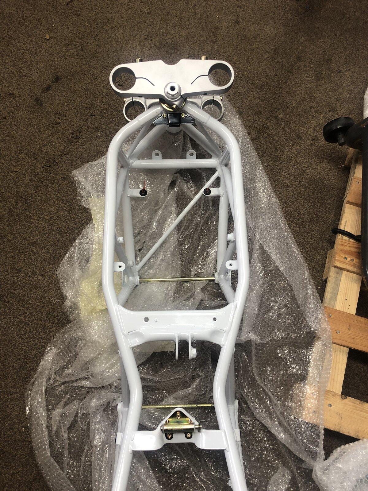 Head bearings in and everything nipped up, Fitted steering stem top nut recesses facing down (correct way) ? Next job wheel bearings.