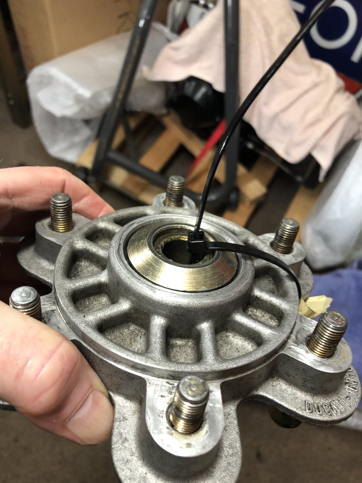 Roadtrip, In your first picture you may have just tie wrapped the cone washer to the carrier, but when you install it, it goes the other way - flat surface to swing arm. Looking good. Cheers Gaz