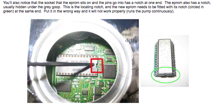 I can't speak from direct experience of chips in bikes , but in general terms , re-seating a chip can sometimes cure electronics problems that have become a real headache to track down . It works by "scrubbing" the contact point between each pin and it's socket hole . This only applies to chips in sockets , of course . Gently lift the chip at both ends .... it only needs to be raised out of the socket by a millimeter or so then push it back into the socket using a thumb at each end ..... ..... try to avoid putting too much force on the board . Some people insist on complete removal of the chip , but this has it's own problems if proper extraction and insertion tools are not available .... eg. risk of bending or mis-aligning pins , static discharge etc . No guarantees ..... but mighty satisfying when it clears a fault that had you tearing your hair out
