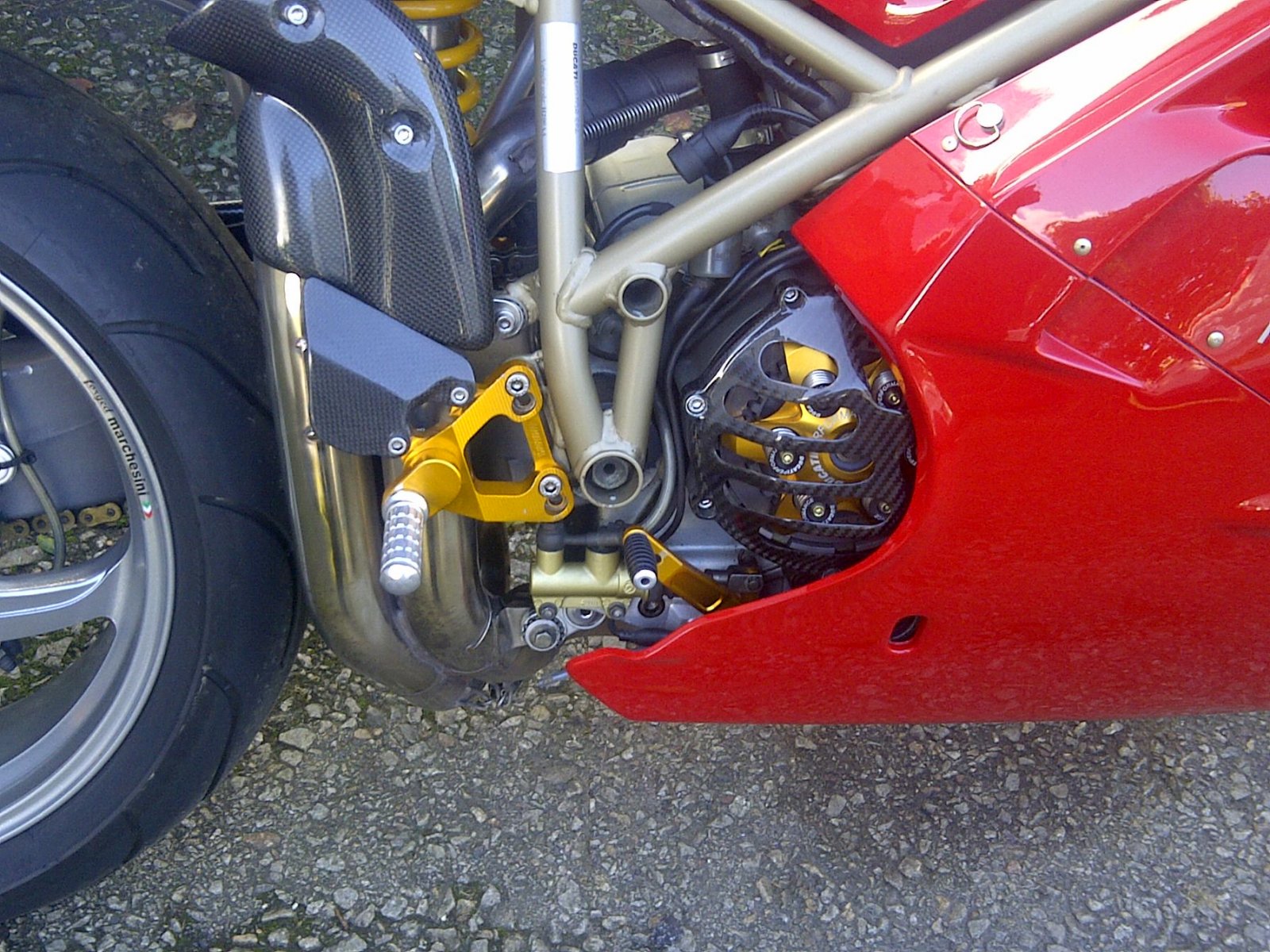Hi I have just started looking for my first Ducati and have settled on a 996BP in red as my weapon of choice. I have a few questions on them though: Should the mirrors be black or body coloured? Should the clutch cover have gaps so you can see the dry clutch inside? I have seen an Info Strada rep for sale (2002). All the other pictures I can see of this bike show this decal should be green but on this bike it is blue. would this indicate it is not a genuine race rep or was it blue on some of them? Also, I like them without all the decals so can they be removed or are they lacquered on? I have been to see one for sale (1998) and when I had a look at it there was a gap between the seat and the tank, 2 very small paint "runs" on the fairing (most people whould not see them but I am very picky) and the rear lights did not sit quite square in the rear faring. Is this normal Ducati quality or has it been down the road and not put back quite right? Thanks in advance.