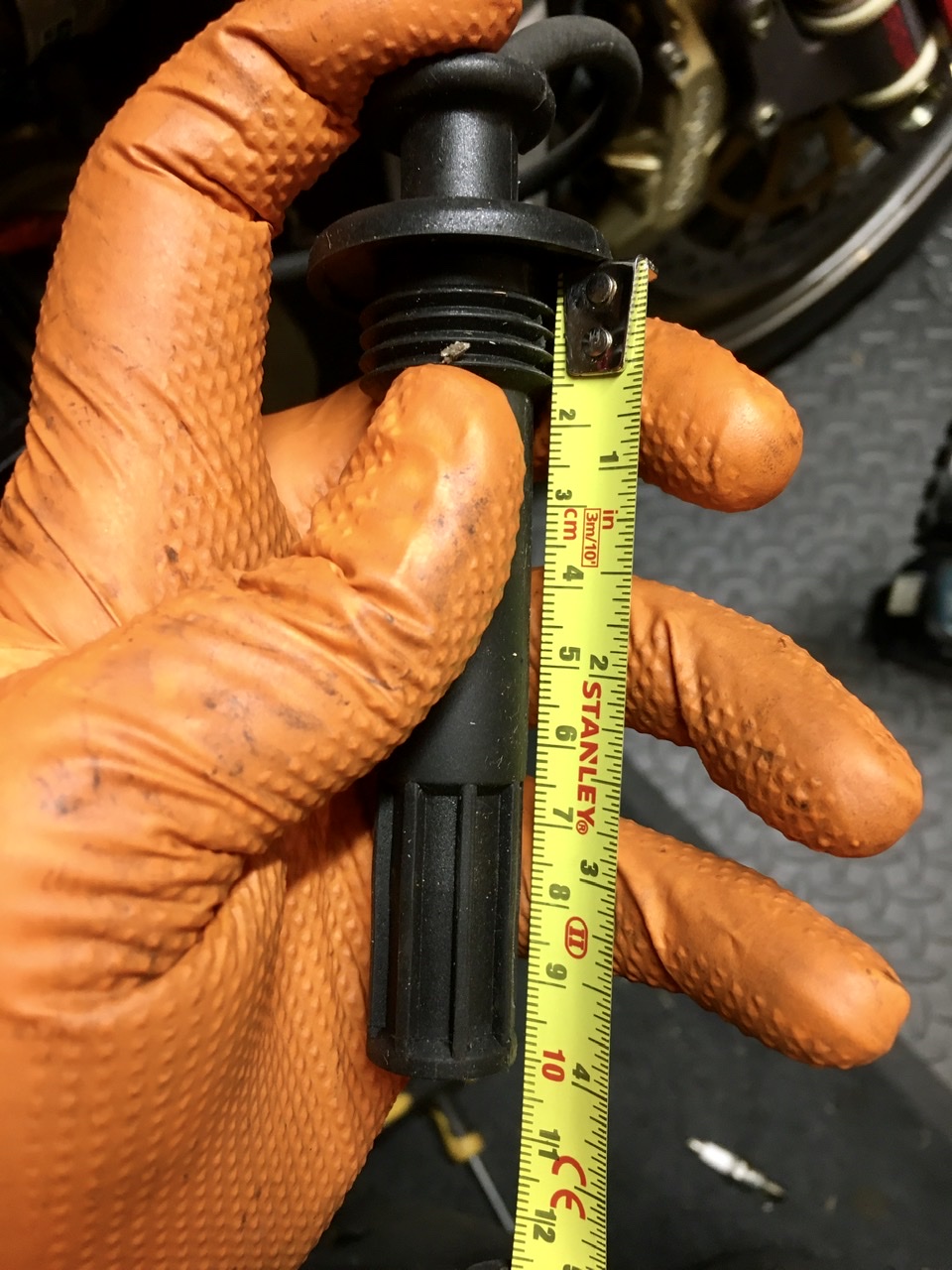 I have a problem with an intermittent misfire which I traced to the front cylinder. I ordered more spark plugs and today’s job was to put a new one in the front cylinder to see if that cures it. New spark plug goes in no bother, while I’m down there I happen to notice the lead from the coil is stamped Fiat Lancia. Ehh? What’s going on here? Someone must have replaced it at some point and used a part from a car that’s cheaper for the same thing. I’ve no issues with that. However, I go to refit the plug cap in the cylinder and realise it’s all to easy to slide in there, doesn’t feel as though it’s really pushing down on the spark plug. Pull it out, push it back. Nah, that just doesn’t feel right. Pull the old plug out of the bin, push that into the plug cap, a nice tight fit, need to exert some pressure for it to go fully home. So what’s up? I get the tape measure out, measure the depth of the hole in the cylinder head to the top of the plug and check it with the length of the plug cap. WTF, it appears the plug cap isn’t deep enough, the top of the plug will only just kiss the socket for it inside the plug cap. Whip the tank off to check the vertical cylinder (thank goodness these bikes are easy to work on), it’s the original part, no Fiat logo, and sure enough the vertical one needs a firm push to get it to seat home, unlike the horizontal one. Out comes the tape measure again. Turns out the vertical cylinder plug cap is 10.5cm from base of the weather seal to the end whilst the Fiat part is 10cm. Horizontal cylinder - 10cm Vertical cylinder - 10.5cm The two side by side I’m now thinking the horizontal plug cap wasn’t making a good & firm connection to the plug. Now I’ve got to order up the correct part and wait a week or so for it to arrive. Bums.