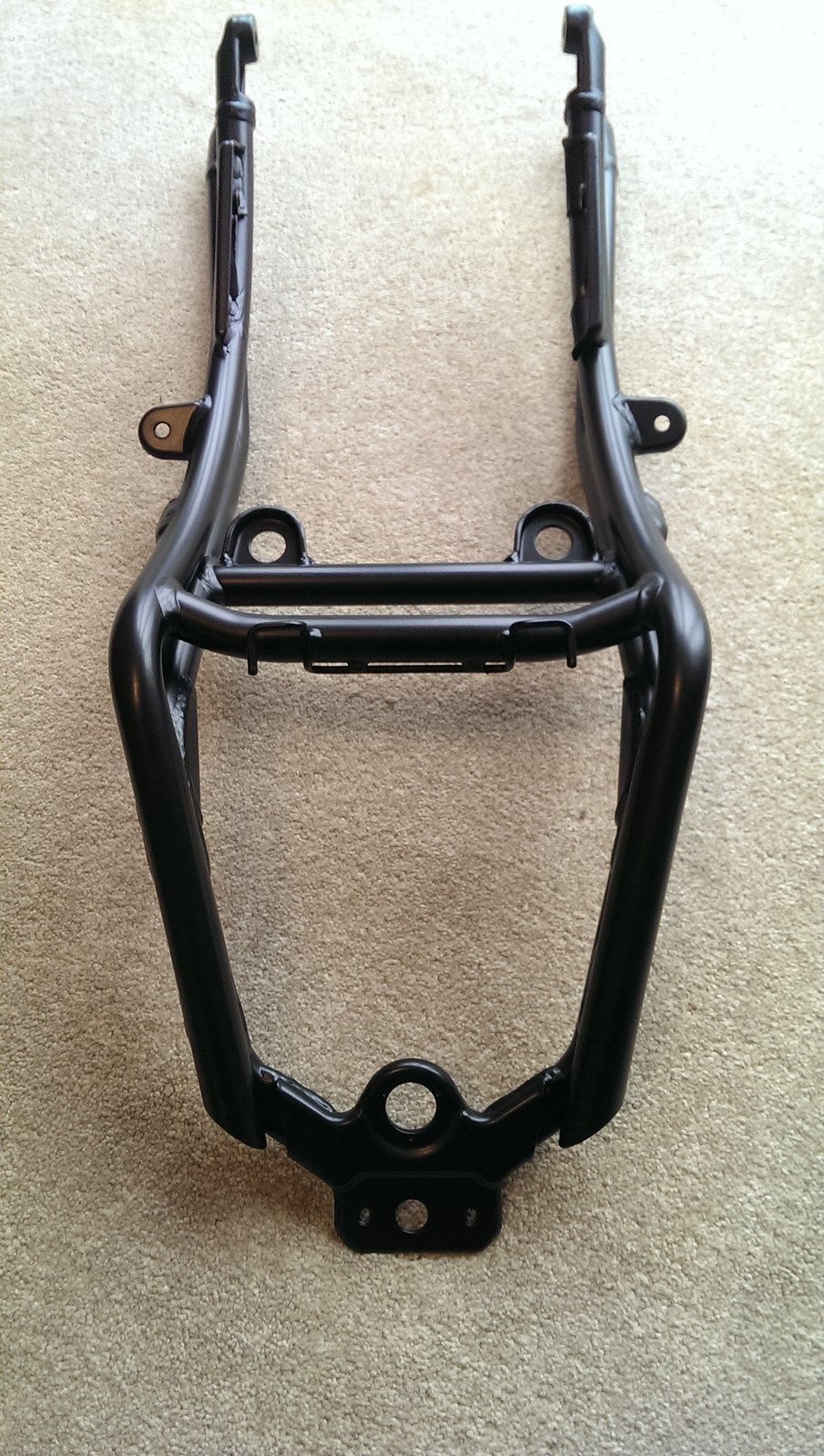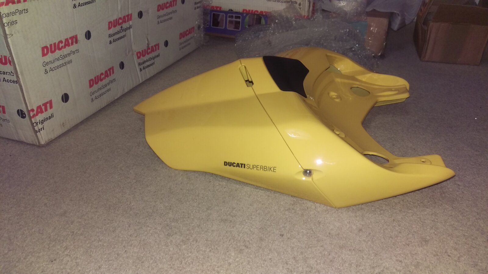 Full respray with OEM stickers ready to fit........ The yellow is darker, less white in the flesh. Paint work really is good, and I'm very picky. Only dropped it in in June (note to self, never tell a sprayer "no rush"). Also fitted CF front mudguard, CF exhaust cover, cut down sub frame (yes, that one, don't start) and had CF air tube runners delivered from USA today. Going to be to nice to ride.