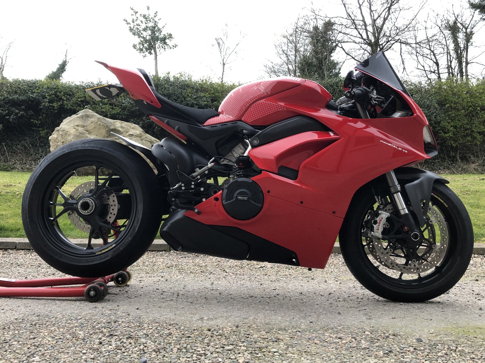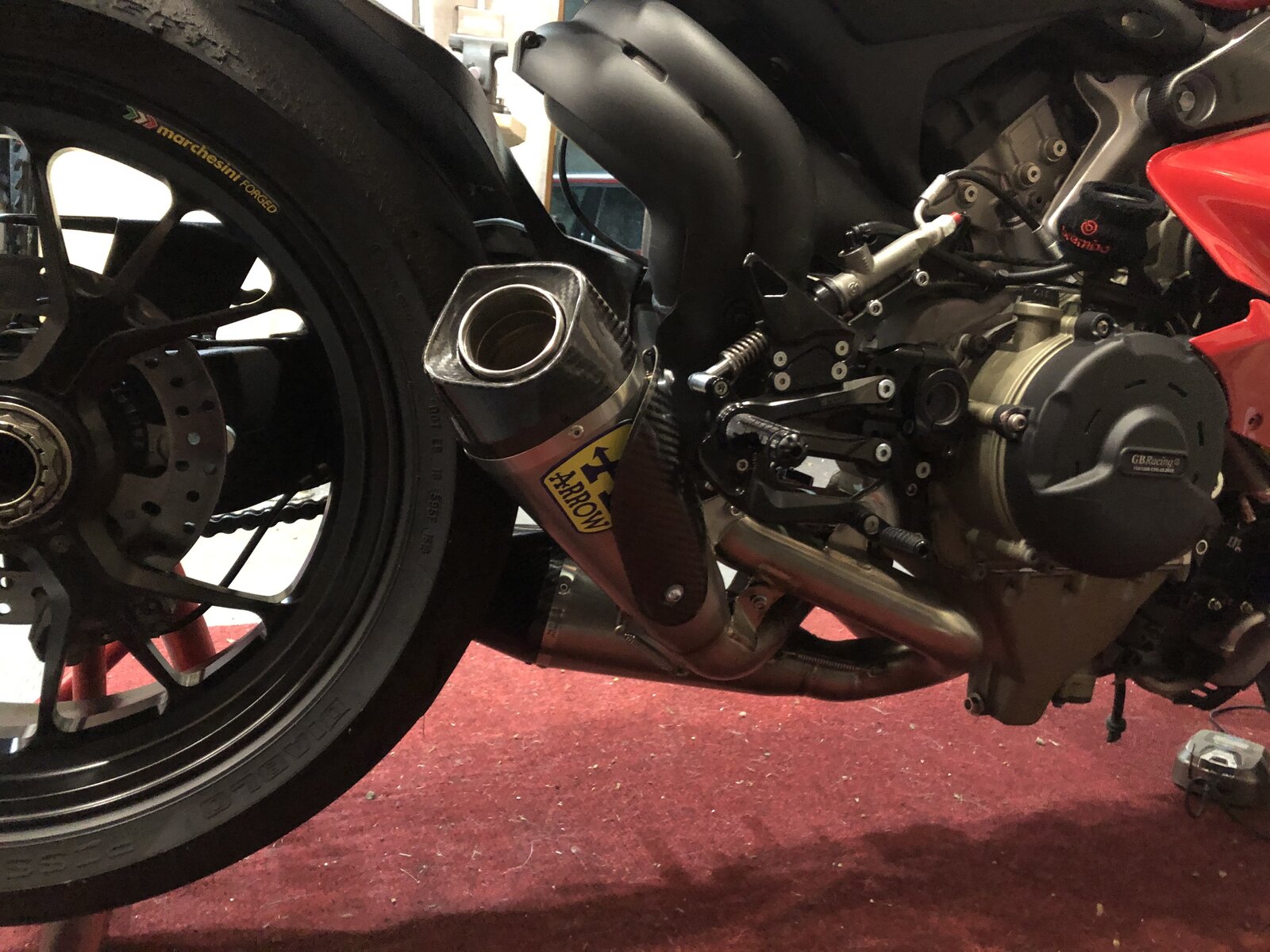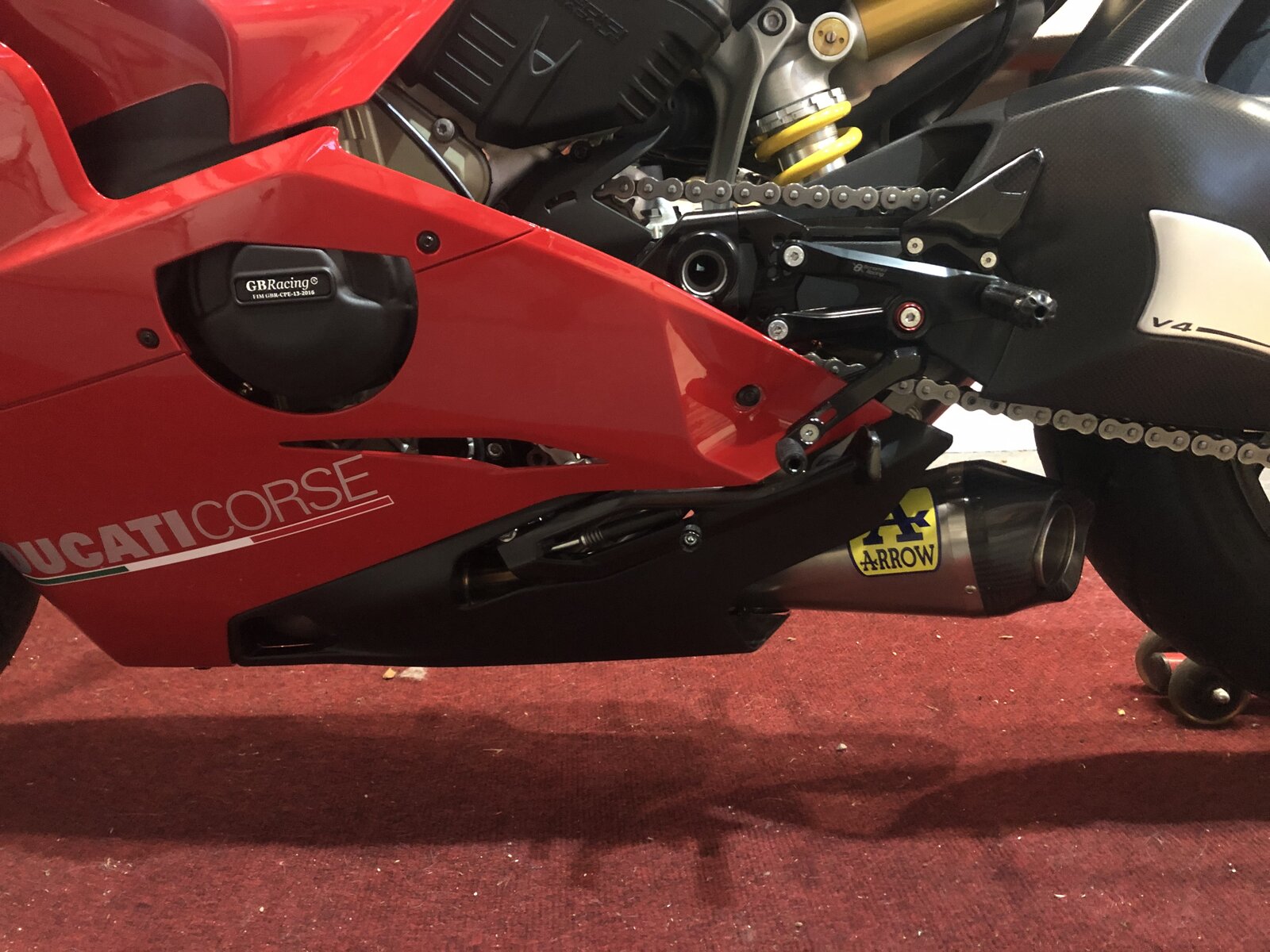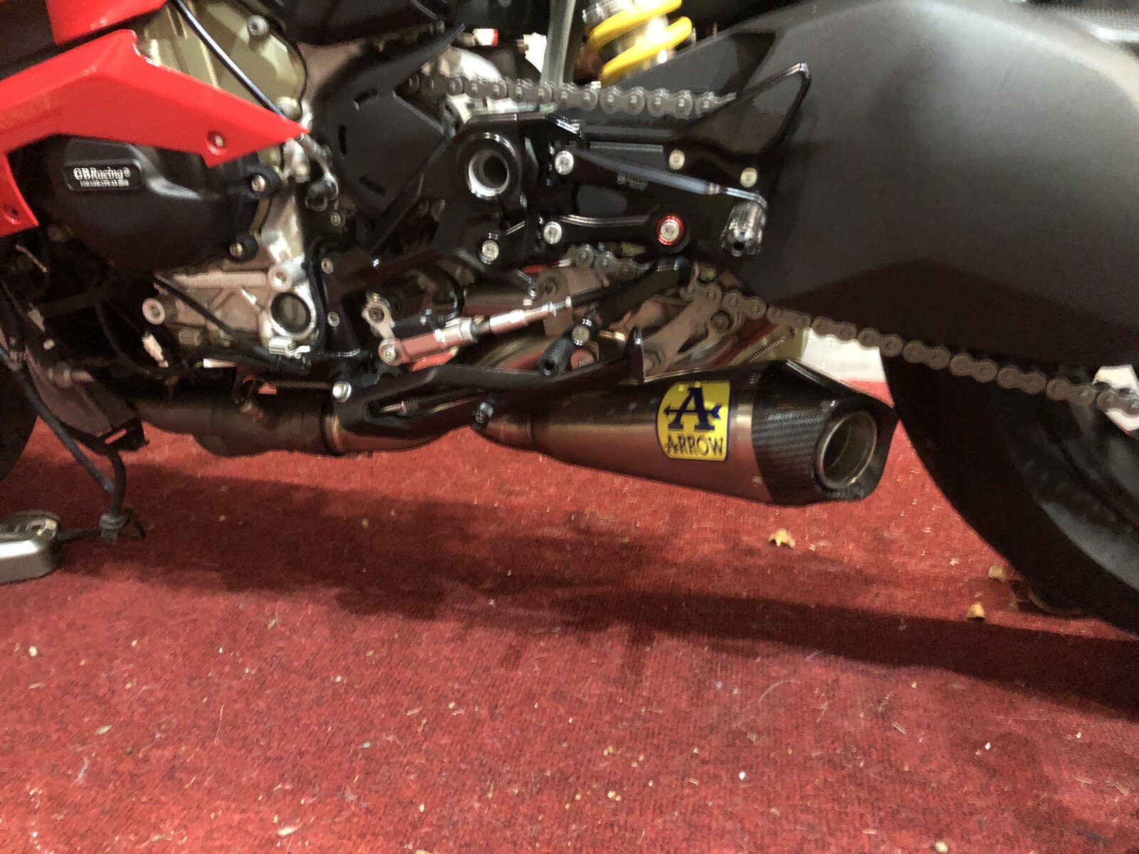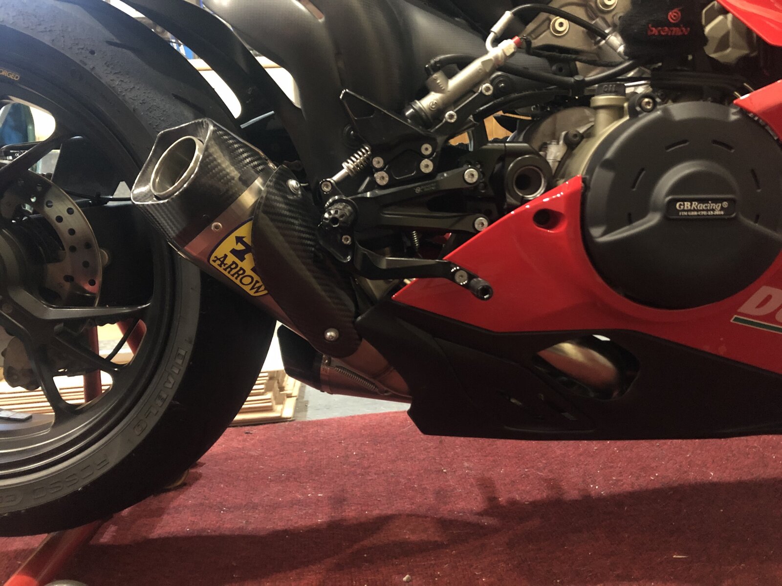 The new style Arrow cans are in stock. https://www.raceandtrackdayparts.co.uk/products/arrow-ducati-panigale-v4-s-slip-on-exhaust They're a bit cheaper on ebay, https://www.ebay.co.uk/itm/Arrow-Se...002139?hash=item3b1ae0abdb:g:amQAAOSwtcNdFJzn