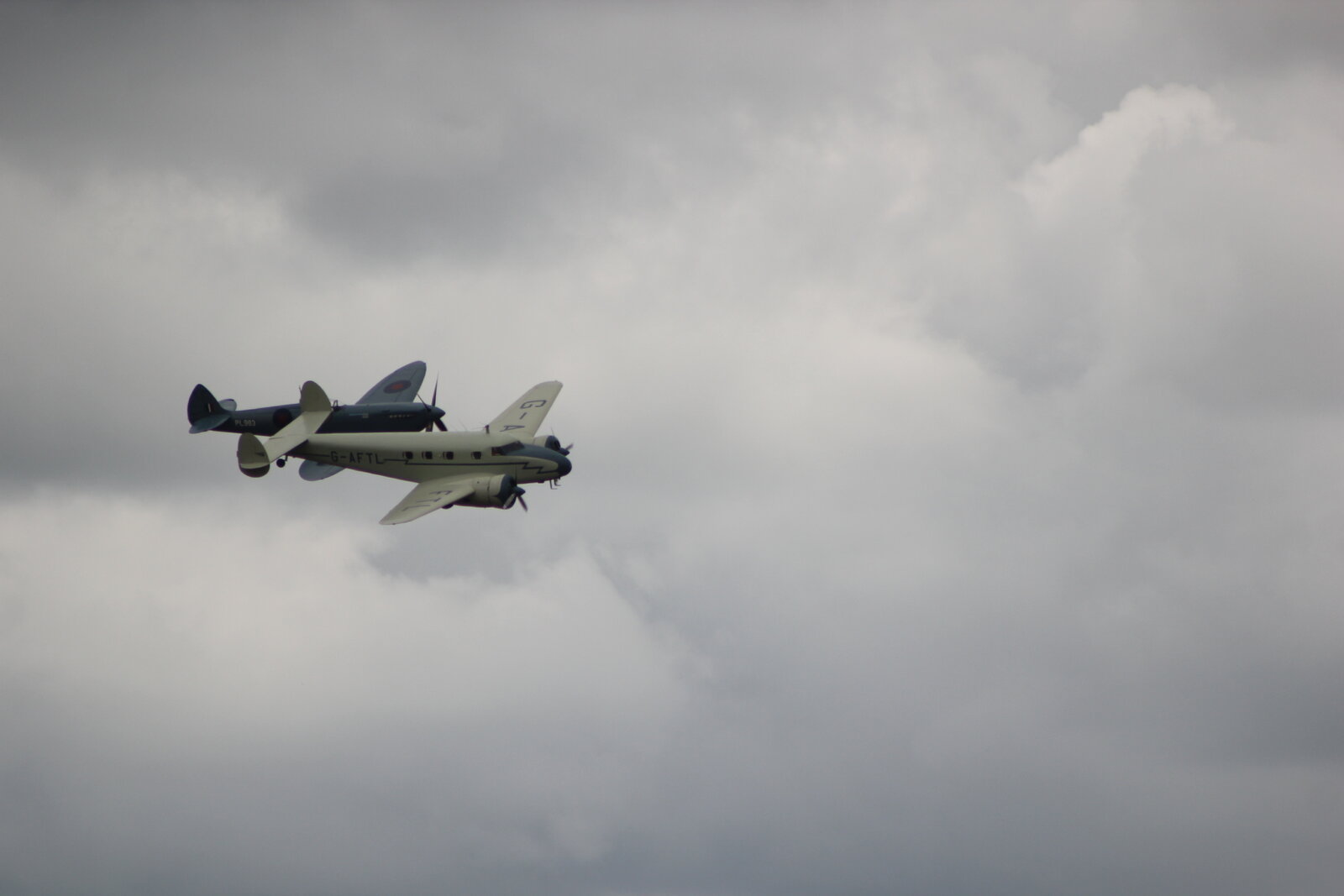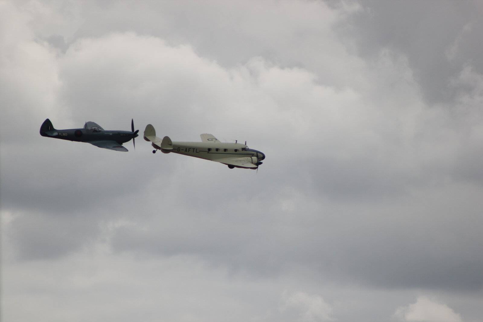 This was taken at Duxford 2023. The significance of the Spitfire PR19 flying with the Beechcraft was to do with reconnaissance Before the war started there was an American Businessman who worked for British Intelligence and in '38/'39 flew all over Germany taking photos from the plane and supplying the British with Valuable intelligence. The Spitfire did the same during the war