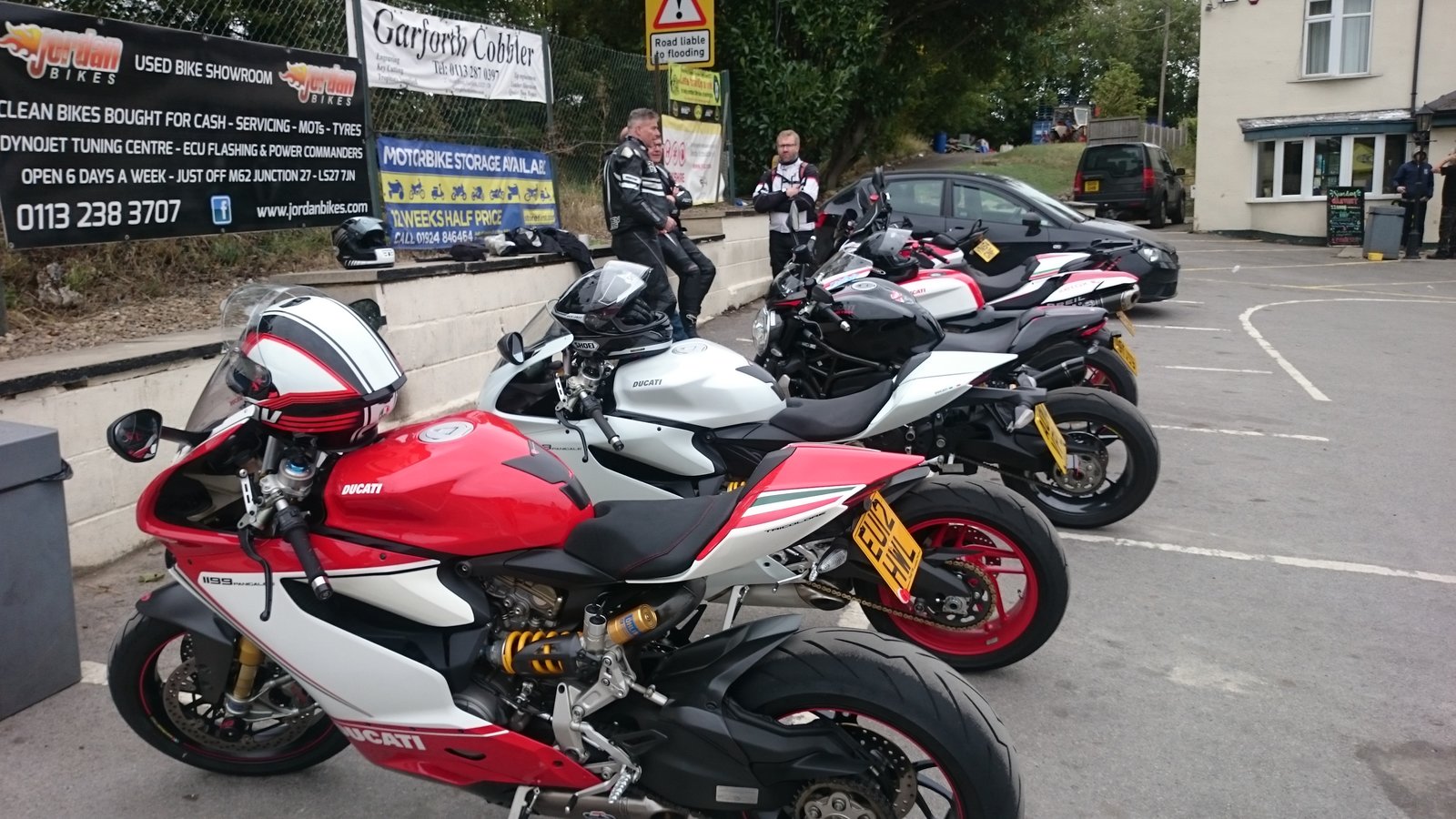 Hi All, Thanks for the meet and rideout today. Thoroughly enjoyed it and good to meet everyone. @Ben Mallinson thanks for the invite. Unexpected outing, but was just what I needed. Was an early start, a little nippy, and the 40 ton artic on its side spewing diesel across the roundabout forced an early re-route on the way to the rendezvous point. Enjoyed the Crowle road to Goole (as always) and great to try out the Carlton to Brotherton road for the first time. Not the best, but the last section was a find. There were 5 at a busy Ferrybridge and the punters seemed to like the Ducs on display. Some quick introductions and then we were off. Got split up at the first roundabout and it all went a bit pear shaped as 4 tried to follow the leader who had no break light and no indicators. It made it interesting for the number two and some fustration was shown. @Exige entered a holding pattern at one roundabout to make sure we all caught up. By then though we were 4. Not knowing what had happened I thought we were going to be in deep trouble with @its me when we got to Sherburn! Sorry to hear you had bike trouble and hope it's sorted soon. Shouldn't happen to a nice 959 like that. @Exige took us via the Cawood Road which was unexpected. It's been years since I've ridden that road so it was nice to do it again even with the horses, cars and fallen leaves. Sherburn seemed relatively quite on arrival, but a lot were inside keeping warm. Still it meant no big queues to get a mug of coffee. Thanks @Exige. Good conversation followed and there were plenty of bikes to look at, but not quite as many as @Exige has at home!!! @Rebel tipped up on his newly tarted enhanced Pikes Peak Multistrada. It's going to be just as distinctive as the 749. Black leathers on a white 899 was just too monochrome to compete. Much like Graham's stealth Monster 1200 S. V nice. From Sherburn 3 headed back to Lincolnshire via Knottingley and Goole ( the Crowle road again) and Scunthorpe. An excellent trip out. Shame it's getting to the end of my season, but hope to have a repeat sometime. Safe riding everyone. Cheers, Chris