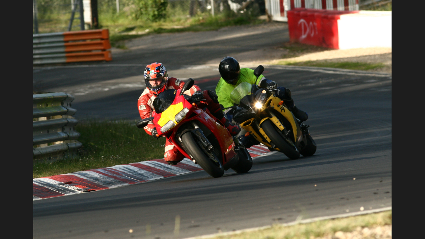 The other guy was Simon Mulley, he used to be a guide for Byrne-up bike tours back mid 2000's. A very quick guy on a bike, always had the precision of a surgeon with a scalpel when going for tight/risky overtakes, spent his life riding the welsh roads. often I 'd just hang back and let him go. he was the guy that got me into the car instructing gig. A nutcase off a bike (and on). His love of riding the Ring waned after losing mates to fluids, and he himself had a few bad offs here, preferring to do the Doc Scholl courses instead of Tf as Andy instructs on thaat so the pace would be about 8 min. Trouble is once the pace picks up you really are in the lap of the gods as to fluids. I did ask him about Andys times before and he had tagged onto Andy in very quiet Tf and andy was regularly/casually doing 7-30 and Simon was busting a gut to keep him in sight inevitably pushing it but after coming round the last corner Andy would already be in the pits.