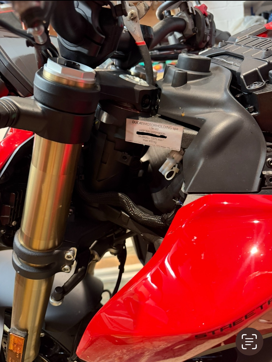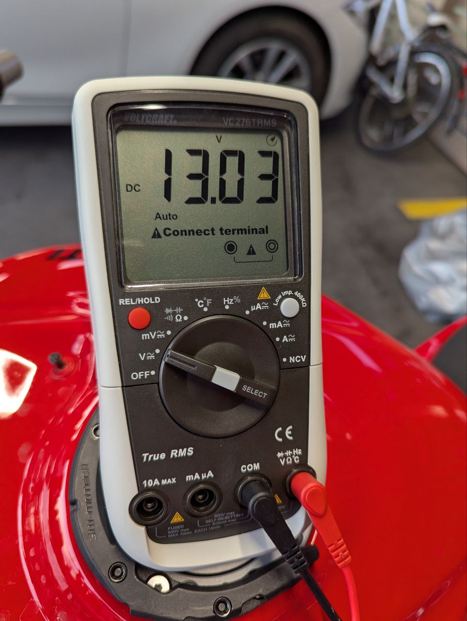 Thanks to your connector link and information, I've been able to successfully install my Wireless Charging head from Quadlock. I can confirm that the connector has 13V available without any activation required and the connector from Amazon works well and is of good quality (thx Stripy!!). As for installation, if you have the 12V native wireless head from Quadlock, any 12v native accessory or the official Ducati accessory, everything can be setup easily next to the connector. If you have a bigger setup, like mine, you can put any bulky piece under the seat, there is plenty of room. Then, it is easy to route the cables to the front, hidden from sight and well secured with zip ties. I don't think it is a good idea to try to put everything next to the connector as it is also the location of the air filter and air intake. Would be a bad idea to block the airflow. The issue for me is that I need the 12V to USB adapter from quadlock so that I have maximum compatibility with some (Google) Pixel phones. If you don't need that, the normal 12V wireless head is way cleaner and easier to install (no bulky adapter and extra cabling). See this comment for better explanation.