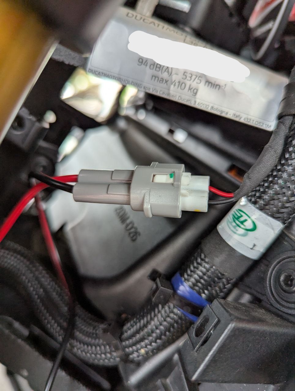 So my beloved new V2 have just had its first service - asked there garage to install the Quadlock wireless phone charger. Didn’t do it - didn’t want to splice in to the wiring loom, so suggested I went with the original USB charger, that is just for plug in…… okay, fair enough- if that’s their policy, I may have to go with that - BUT, I’d still want to use my tomtom either on phone or the Rider550 as a physical device, so still need to tap in for some live-switched power - and not directly to the battery. Does anyone know where the connector is for this USB port? https://www.ducati.com/gb/en/accessories/ACC013196 Part number according to configurator should be 96681821AA - but googling it give various options from off-road framework for desertx to security module, and no results about a usb port…