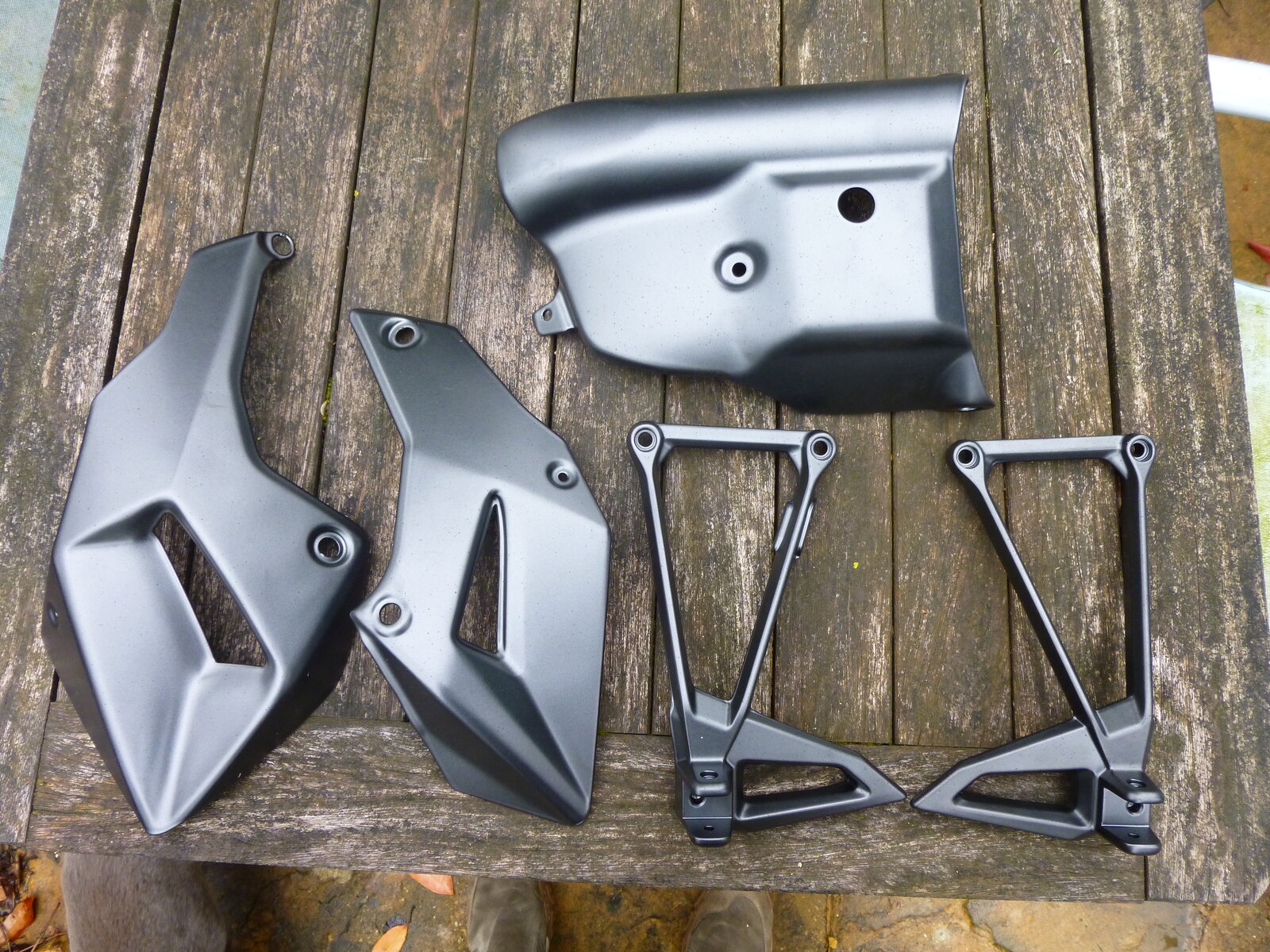Had my belly pan, pillion peg mounts and Termi exhaust cover plate powder coated satin black last year. The exhaust plate was already satin black but I had this done with the other bits so it all matches up nicely. No issues with heat and looks great imo.