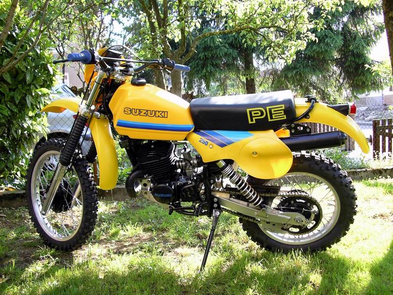 This is what i used to have the most fun on, (not mine in the pic) Suzuki PE 250, Regret getting rid of it, mint ones go for big bucks now. Cant say the Duc was the "Best' bike i ever had because it wasnt it, just looked and sounded the best, sorry to offend folks.