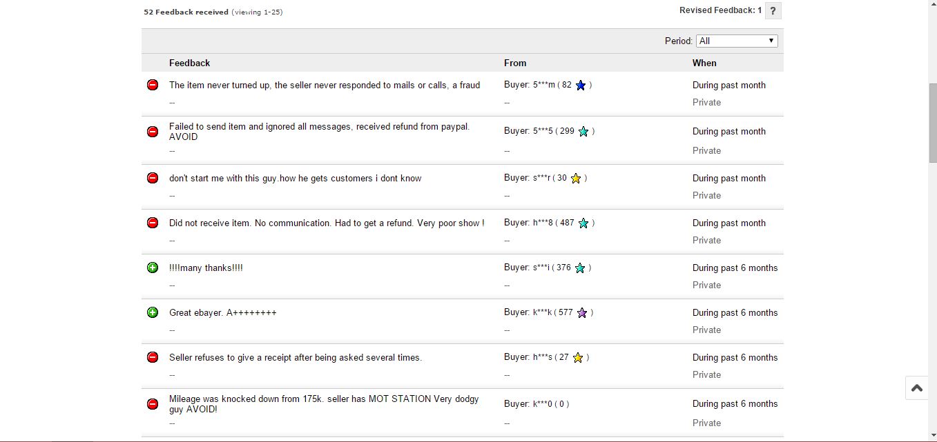 Here's his feedback, 4 negatives most recently no doubt lowering his rating, prior to that he had two negatives on the trot.