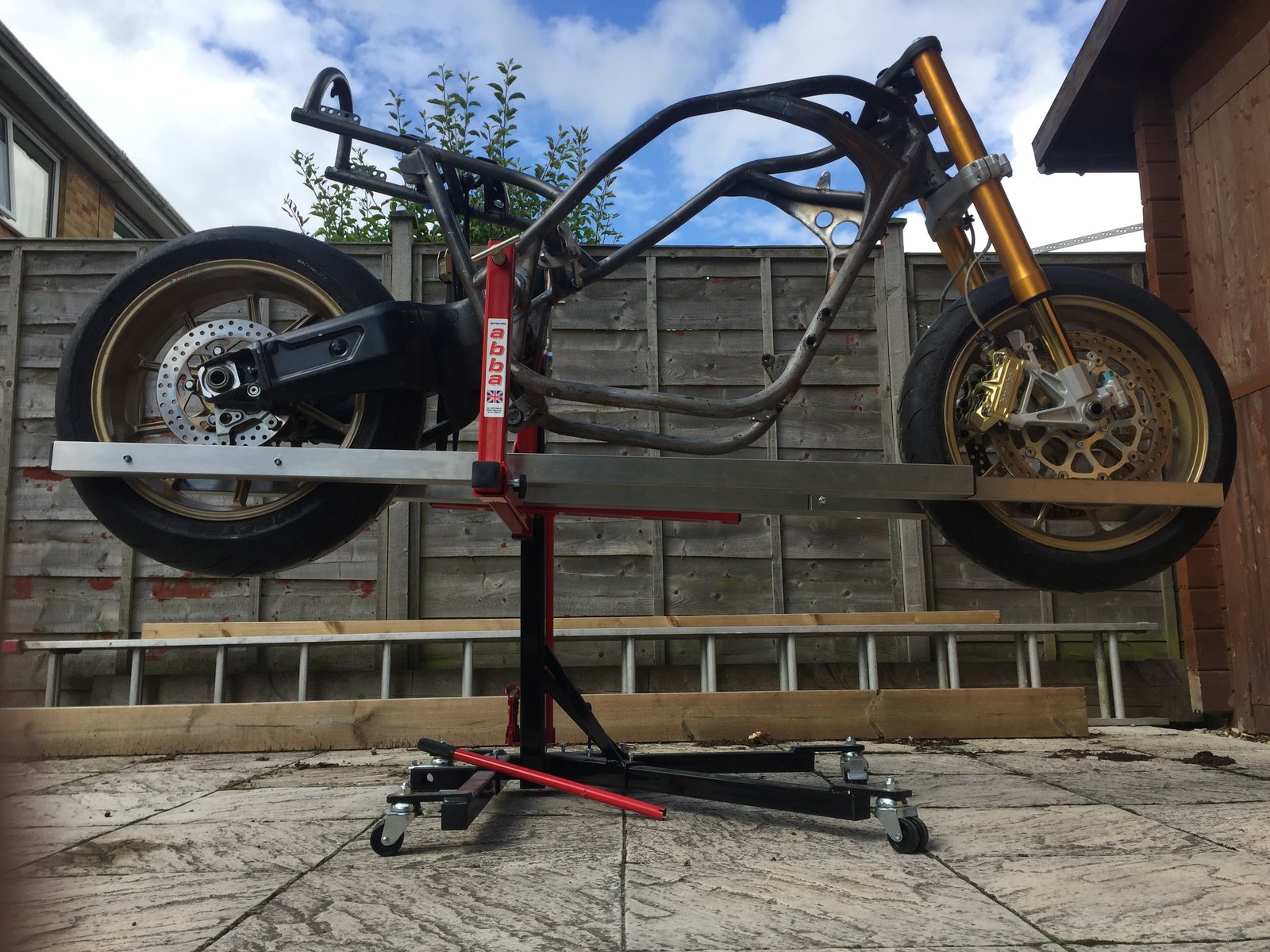 2. I think the Abba Skylifts are the best for working on / building bikes - here's mine being used in conjunction with my wheel alignment jig.
