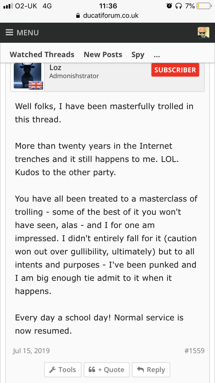 (I still cannot believe you are "wearing" as a badge of honour ... a post telling all and sundry that you are a troll. How that went over your head at the time, and even now, is an complete mystery)
