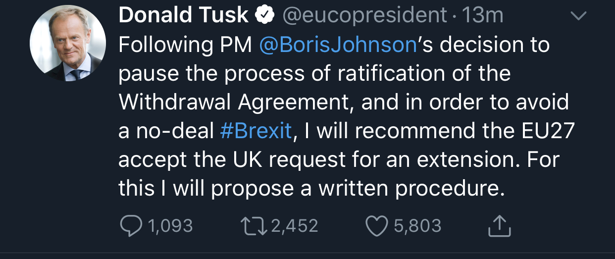 Tusk more than any other, has been the lynch pin for remainers having a man on their side. Bercow retires in 9 days, and junker and tusk retire in 6 weeks. The new eu commission chief Ursula von der Leyen, who is to replace junker has neither the gravitas or a full commission cabinet yet with a number of her nominations already opposed. It will be interesting to see how the transition within the eu from old guard to the new happens