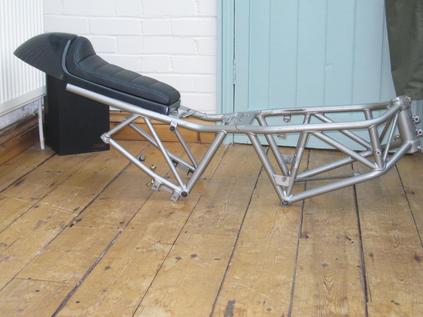 The problem with the oem chassis is that the rear en goes pointing up and won’t make a correct line with the fuel tank if you build a Cafe racer without modifying it