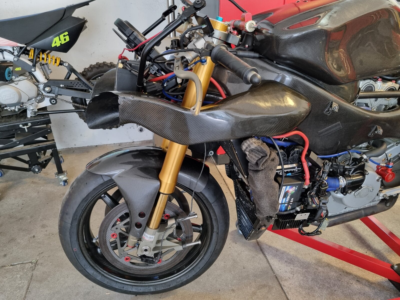 Hi Guys, now an update about the project. This project with the 999RS06-engine and the Dymag-Carbonswingarm ist stopped. It is too expensive. BUT: Monday i found here in germany the perfect bike to bring a 999 in really fullcarbon. And sice yesterday is it mine.