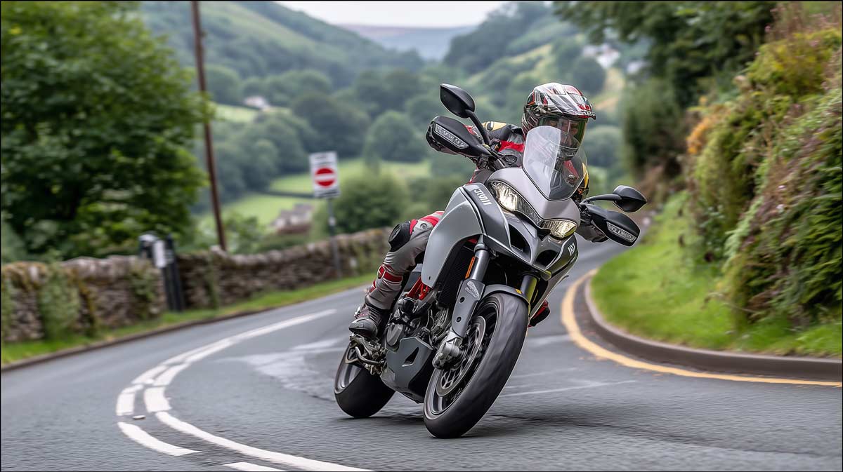 I had to flip this image to get the bike onto the correct side of the road, hence you can see the chain is on the wrong side but this was one of the 4 images generated along with the other image above. Prompt was as follows: "photograph shot on a Canon 5D mk3 with an 85mm f1.4 lens of a motorcyclist on a Ducati Multistrada Pikes Peak 1260 and wearing a Shoei Neotec 3 TC5 Helmet riding on a dry twisty road in Wales" Well, it did take a few liberties; firstly this isn't a Pikes Peak (though the other image is pretty good in this regard), the helmet isn't correct and for all images, despite me asking for a dry road it decided "Nah, it's Wales mate"... This is using the new Midjourney version 7. The fact that it found sufficient reference to a Multistrada and did a pretty decent job of that impressed me.