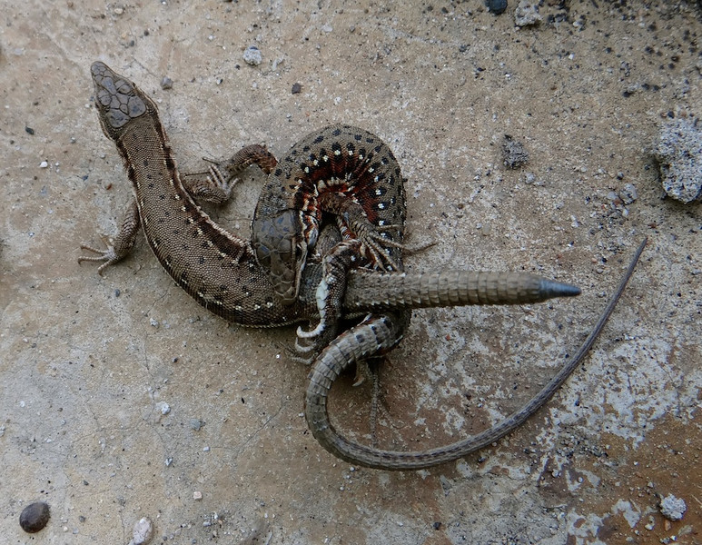 Quick break and snack stop along the Black Dragon Pool Road in the mountains North of Beijing, pair of lizards perform a little sideshow.