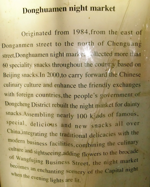 Quick visit to the Donghuamen Night Market not far from the Forbidden City and Tianamen Square in Beijing.A sight in itself, the bustling night market near Wangfujing Dajie is a veritable food zoo... Donghuamen Night Market - Wikipedia, the free encyclopedia