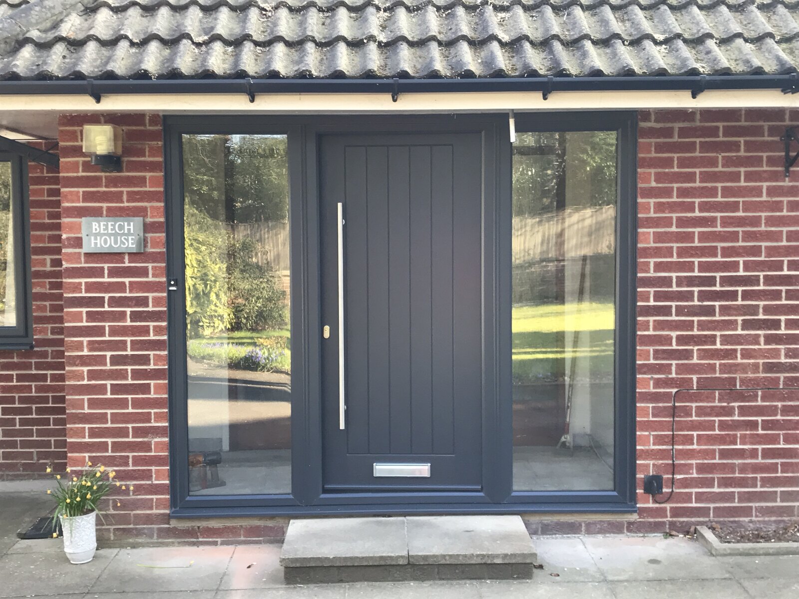 Secured by Design means the glass is upgraded to laminated and the lock is 3star security rated and the handles are stronger. As you are looking for a door and side panel can I suggest you have a midrail fitted to the side panel as this adds some strength and helps with the reliability of the door, the long in fashion door handles add approx £300 to the cost, the doors are always white internally as standard, when it is fitted make sure there is a minimum of 6 fixings per side, its always best if the door has a side panel that the hinge side is fixed to the brickwork.