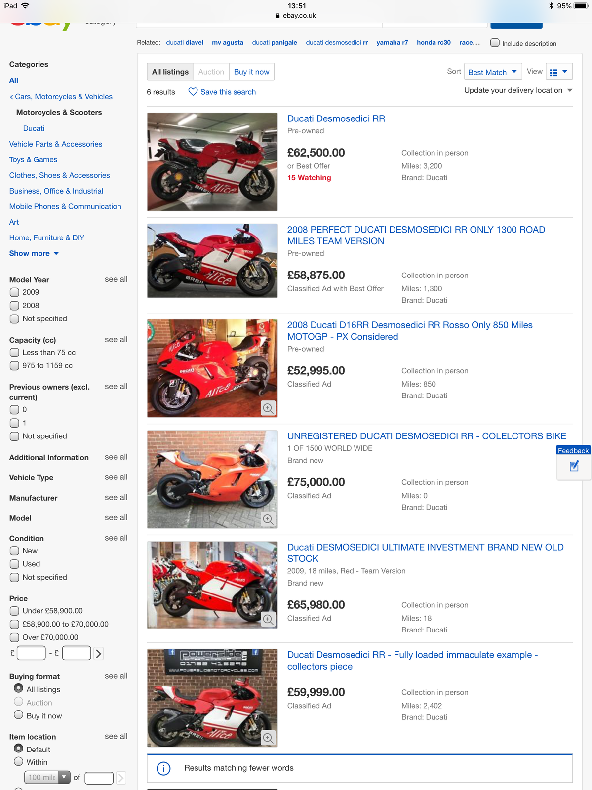 Unregistered one there. So that will come with the 3 year Ducati warranty then?! Hope, as a Ducati dealer DMC are offering full 12m warranty on it for too...may explain the price #unusablewithoutfullengineinspectionornewenginefor20k