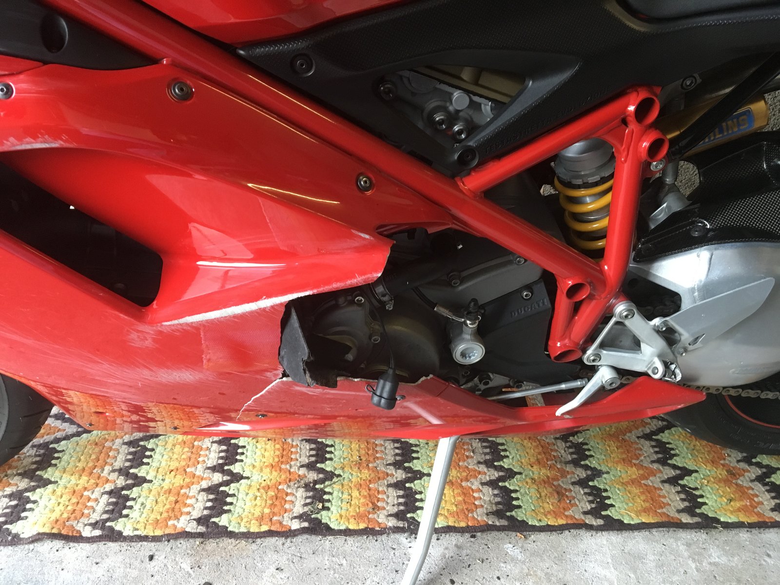 Back on topic - if it was me, id strip everything off the bike thats damaged put it to one side and take it from there, bit by bit....paneling is repairable....find a paint shop (im sure theres someone on here "who knows someone") box it all up and send it off. Pound to a pinch of salt any paint shop is going to be snowed under with work - most of them are if theyre good. If the paneling has "disappeared from your view" as it were - then subliminally youll feel thats somethings happening...assuming it takes a while for it to be turned around then (and i cant say here) your finances will catch up a bit.... the left over bits, then i would start your search and look for second hand stuff.... The above is the attack vector ive taken myself. It depressed me to see my hyper sitting at the back of the garage with a seized solid engine. It didnt cost me a penny to take it to pieces and apply the above logic (just 60 quids worth of fuel initially to get the engine up to Ducati John) and, as stated - he knows his stuff so he's snowed under with work so the engine is sitting there waiting in line to be rebuild, in which time ill have gone through 2 paydays so i can send him a bit of cash each time. So, while not having the whole lump of money, ive already covered the coating of the engine, and sent him an initiall 600 quid to cover the engine strip, the replacement crank, balancing and a few other things. When he actually starts the rebuild ill have covered most of the spares bill (maybe all of it) then the left over cost will be his labour.