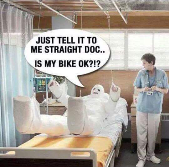 Yet to make a self healing bike. We heal up reasonably well though, so clearly we are more worried about the correct thing