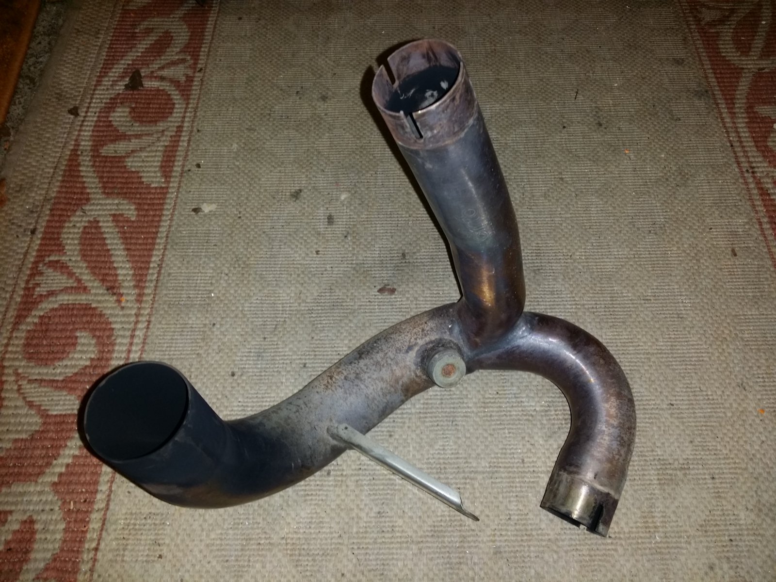 5. IMG_20150203_214000.jpg You wont have to! - the decat comes with an o2 sensor option (the Danmoto one does anyway) so when you take the cat out and put the decat in - you can re-attach the sensor. Here's mine - note the o2 sensor down at the bottom of the pipe - mine is blanked as mines been dyno'd.