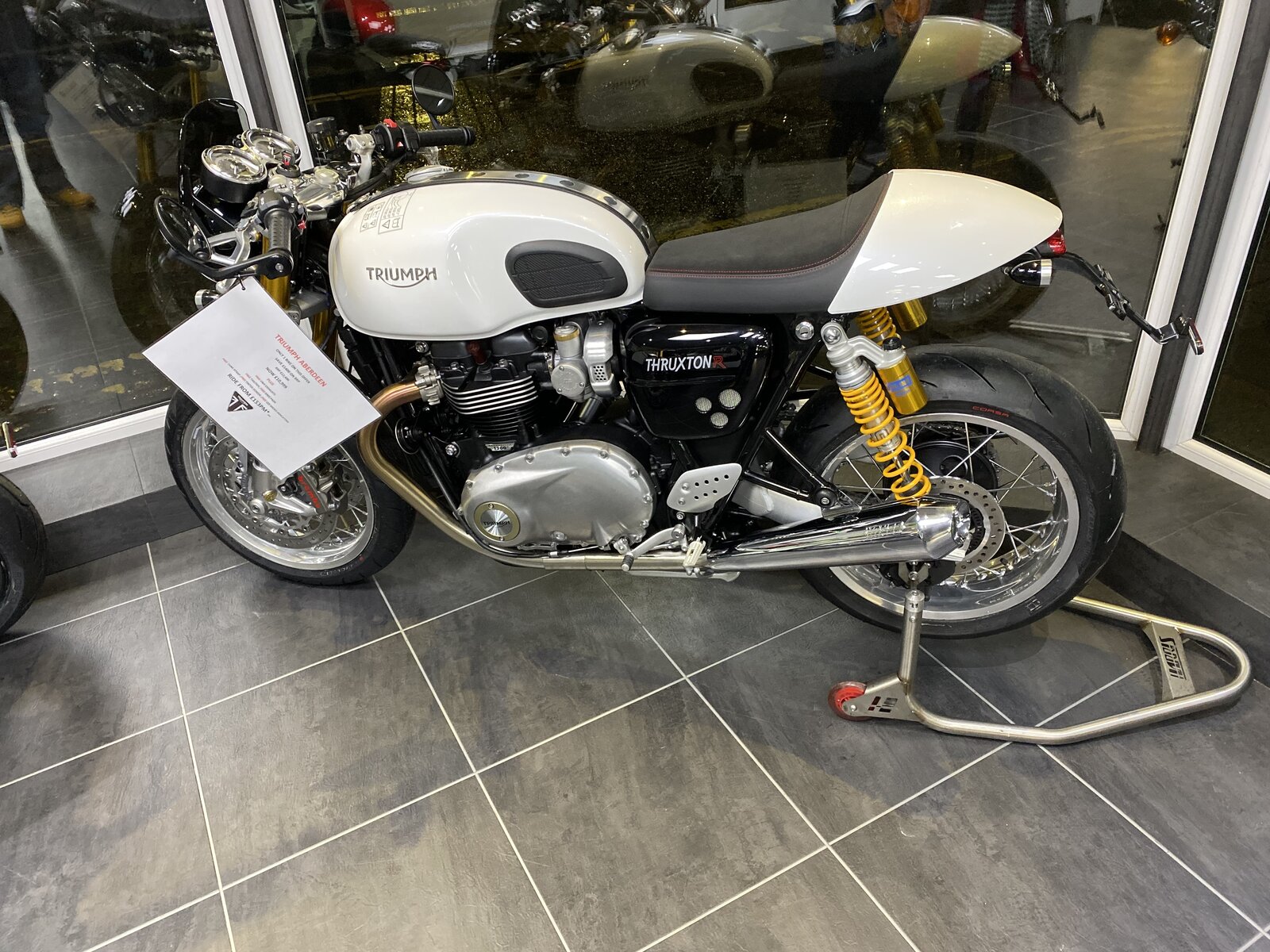 12. Popped into the local triumph dealer to see the new street triple and get a free sausage roll and ended up with a brand new Thruxton R. Comes with V&H pipes, tail tidy, fly screen, led indicators, tank strap and pads. For 11k I’m happy