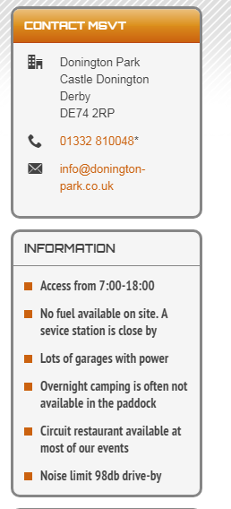 Please don't add up the costs of track days, wives may read this one day....... I've mailed MSV to ask about the noise but looking at the "Circuit Guide" section it looks like Donny is always (well, the default) is 98 drive by. As it's owned and/or run by MSV I can't see NL getting louder days then MSV. At Brands their quite days are 98db static and 88db drive by. Now what would be an issue.......