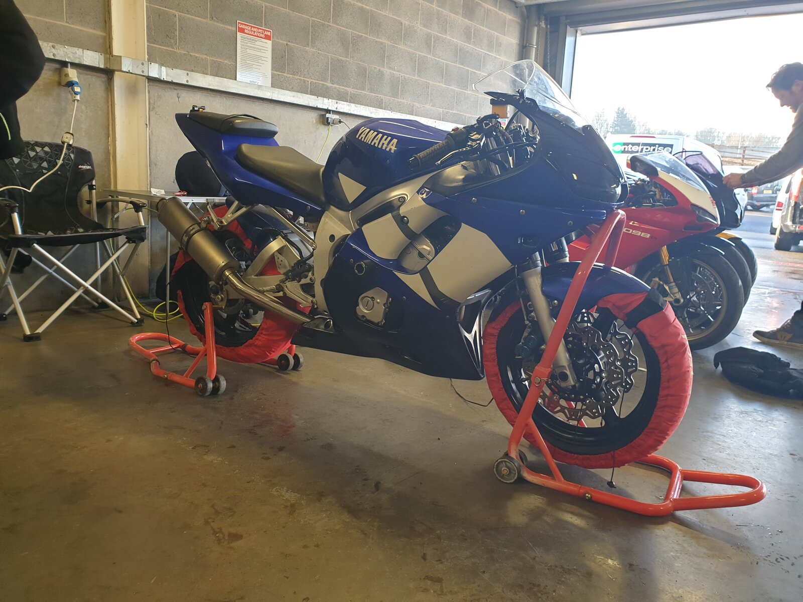 Great to meet everyone, really nice bunch of people. I got out at 2.00pm as predicted and managed 1 3/4 sessions before I was black flagged for noise. Really enjoyed the tracktime I had though and had a good few laps following Richard R and a couple of the guys in the next garage on an R1 and a 1098.