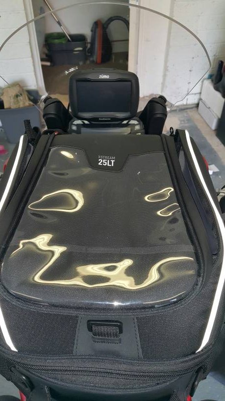 1. Well I received my 1200s today and installed the tank lock ring. I had a similar bag on my '13 GT which I loved, but either this bag is way taller, or the tank is. As you'll see in the picture it almost completely obscures the display. I'm 6'-1" and long in the body, so a lot of people would have an even worse view.