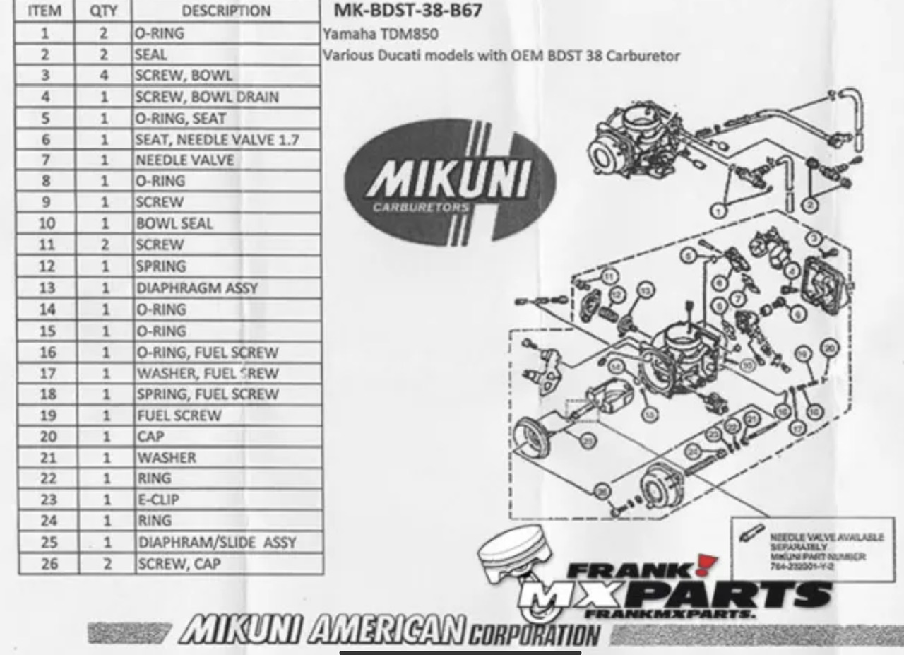 @Cammmy would you consider editing the thread title to replace ‘not the common culprits’ with Mikuni Carb Info or something similar? This is turning into a very useful thread on Mikuni carbs as used on Ducatis and it would be helpful for anyone in the future searching for such info (eg me ) if those words were in the thread title. It would be a shame for it not to come up in search requests where others have a similar issue. I, for one, never even considered the slide wearing in CV carbs, needles yes, but not the slide and its housing.