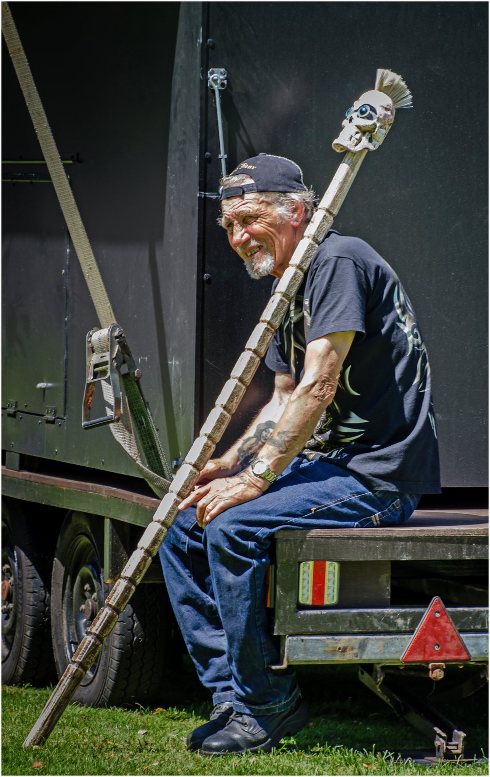 If you could,have moved slightly to the left and got a close up of his face with the wooden head, and converted to b and w, I'd like to see that.